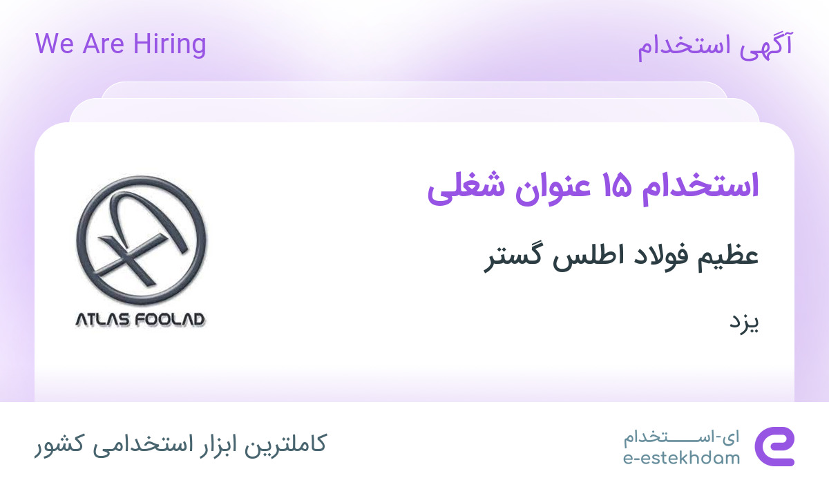 هلدینگ عظیم فولاد اطلس گستر جهت تکمیل کادر پرسنلی خود در استان یزد از افراد واجد شرایط زیر از طریق مصاحبه تخصصی کانون ارزیابی شایستگی دعوت به همکاری می نماید.