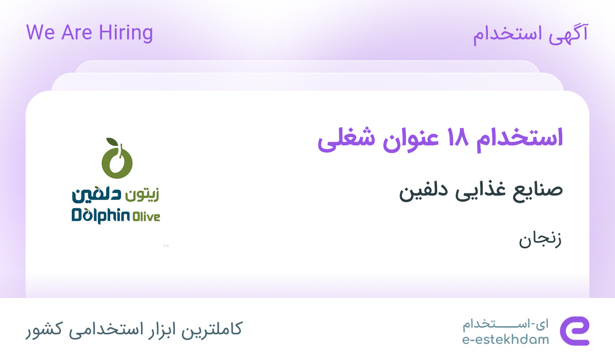 استخدام 18 عنوان شغلی در صنایع غذایی دلفین در زنجان