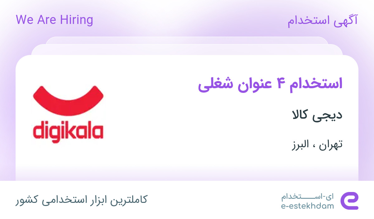 فروشگاه دیجی کالا جهت تکمیل کادر خود در استان های البرز و تهران از افراد واجد شرایط زیر دعوت به همکاری مینماید.