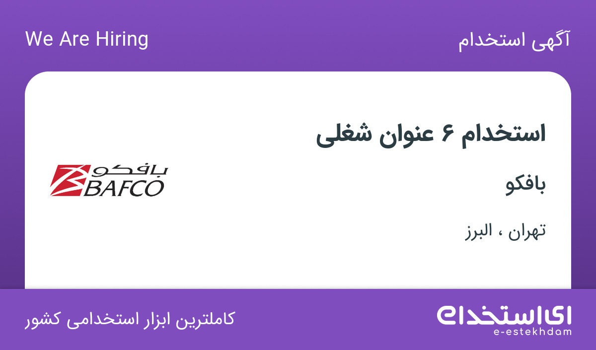 بافکو جهت تکمیل کادر خود از استان های تهران و البرز از افراد واجد شرایط زیر دعوت به همکاری می نماید.