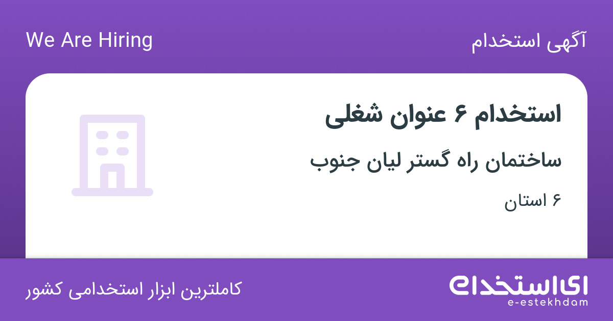 استخدام 6 عنوان شغلی در ساختمان راه گستر لیان جنوب از 6 استان