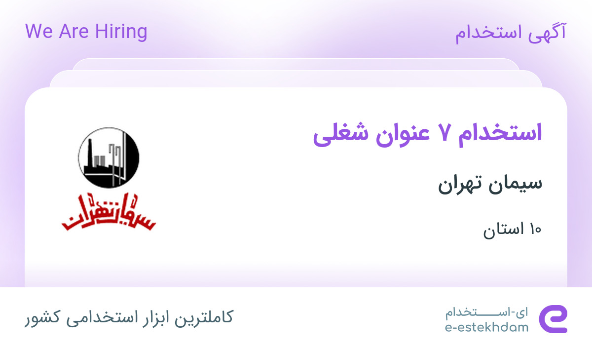 شرکت سیمان تهران(سهامی عام) جهت تکمیل کادر خود در استان تهران از افراد واجد شرایط از استان های تهران، البرز، زنجان، سمنان، قزوین، قم، گیلان، مازندران، مرکزی و همدان دعوت به همکاری مینماید.