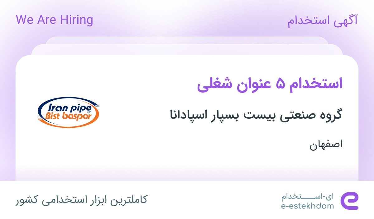 گروه صنعتی بیست بسپار اسپادانا جهت تکمیل کادر خود در استان اصفهان از افراد واجد شرایط زیر دعوت به همکاری می نماید.