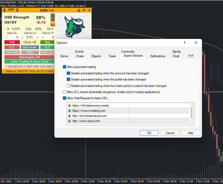 [ad_1] برای استفاده از دادههای بنیادی و تجارت با استخراجکننده طلا، باید این پیوند دادههای منبع آنلاین را در گزینه خبره Metatrader اضافه کنید، لیست مجاز Web request به EA اجازه میدهد به منبع آنلاین متصل شود. روی منوی نوار ابزار در پنل متاتریدر، گزینهها، مشاوران متخصص کلیک کنید و لطفاً تیک و تنظیمات را