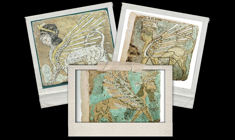 این ۵۱ آجر لعابدار کشفشده که اندازه اغلب آنها تقریباً بیش از ۳۰ سانتیمتر مربع است، دارای انواع مختلفی از نقوش شامل شیرها و گاوهای بالدار با سر انسان، چهرههای اساطیری، پرندگان شکاری، گوزنها و طرحهای گلدار یا هندسی هستند که از قلایچی، یکی از مهمترین محوطههای باستانشناسی در غرب ایران واقع در شمال شهر بوکان در نزدیکی مرز عراق، به سرقت رفته بودند. قلایچی پایتخت پادشاهی ماناییان بود.