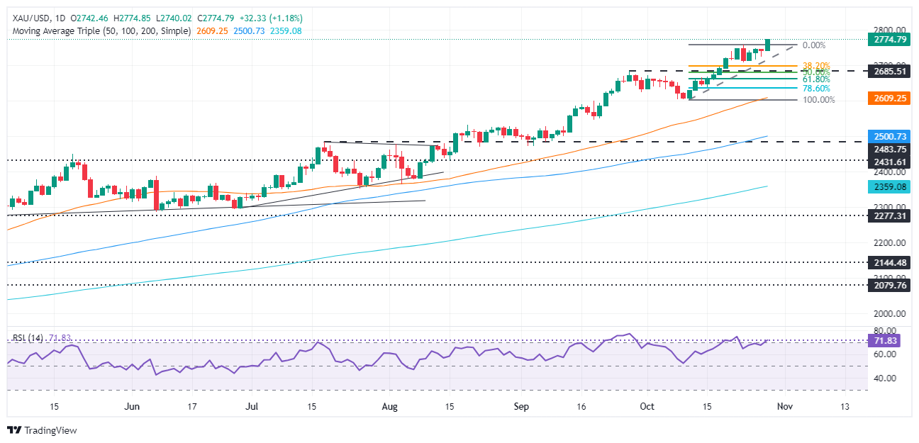 XAU/USD با 2,773 دلار معامله می شود، بیش از 1٪ افزایش می یابد، در فاصله قابل توجهی از شکستن ATH پس از جهش از پایین ترین سطح روزانه 2,739 دلار.