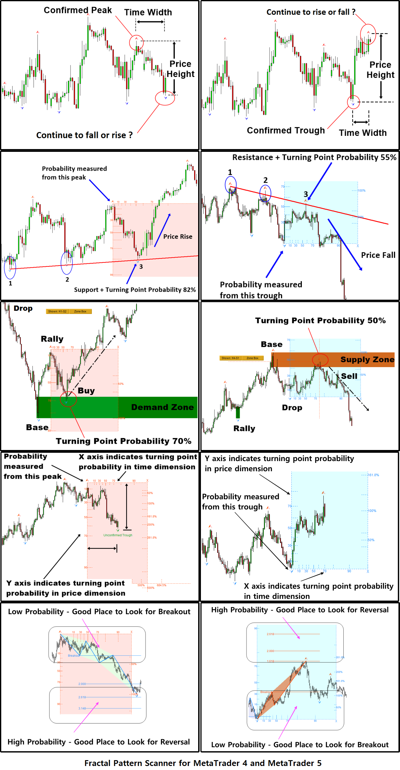 با استفاده از اسکنر الگوی فراکتال، میتوانید فرصت معاملاتی خود را با حمایت و مقاومت، چه مورب یا افقی، تعیین کنید. در زیر صفحه فرود اسکنر الگوی فراکتال در نسخه متاتریدر آمده است.