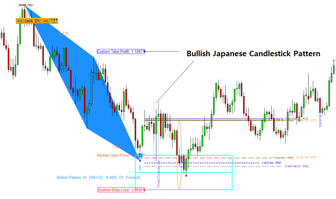 الگوی شمعدان ژاپنی می تواند یک ابزار مکمل عالی برای معامله با الگوی هارمونیک باشد. الگوهای کندل معکوس می توانند تغییر جهت قیمت را پیش بینی کنند. الگوهای شمعدانی ادامه دار می توانند گسترش را در جهت قیمت فعلی پیش بینی کنند. الگوی شمعدان ژاپنی بینش بصری را برای شتاب خرید و فروش بازار فعلی فراهم می کند. سپس Harmonic Pattern به شما کمک می کند تا مکان نقطه عطف بالقوه را در نمودار خود شناسایی کنید. از این رو، ترکیب هر دوی آنها می تواند میزان موفقیت تجارت شما را افزایش دهد.