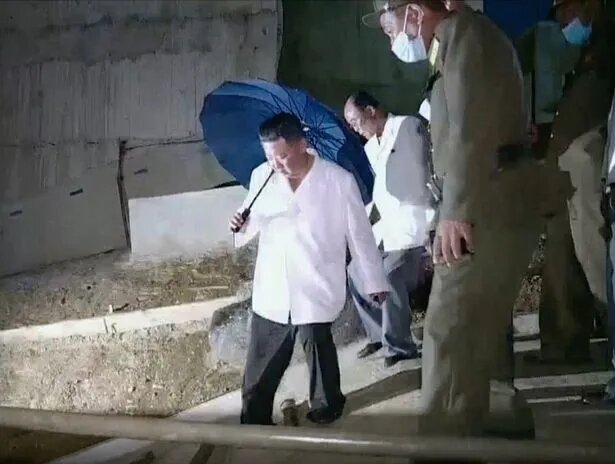 در یک نقطه از مستند مذکور، کیم جونگ اون در حالی دیده شد که به سختی برای پایین آمدن از پلکانی موقت در ضمن بازدیدش از یک سایت ساخت و ساز همزمان با بارش باران تلاش میکند.