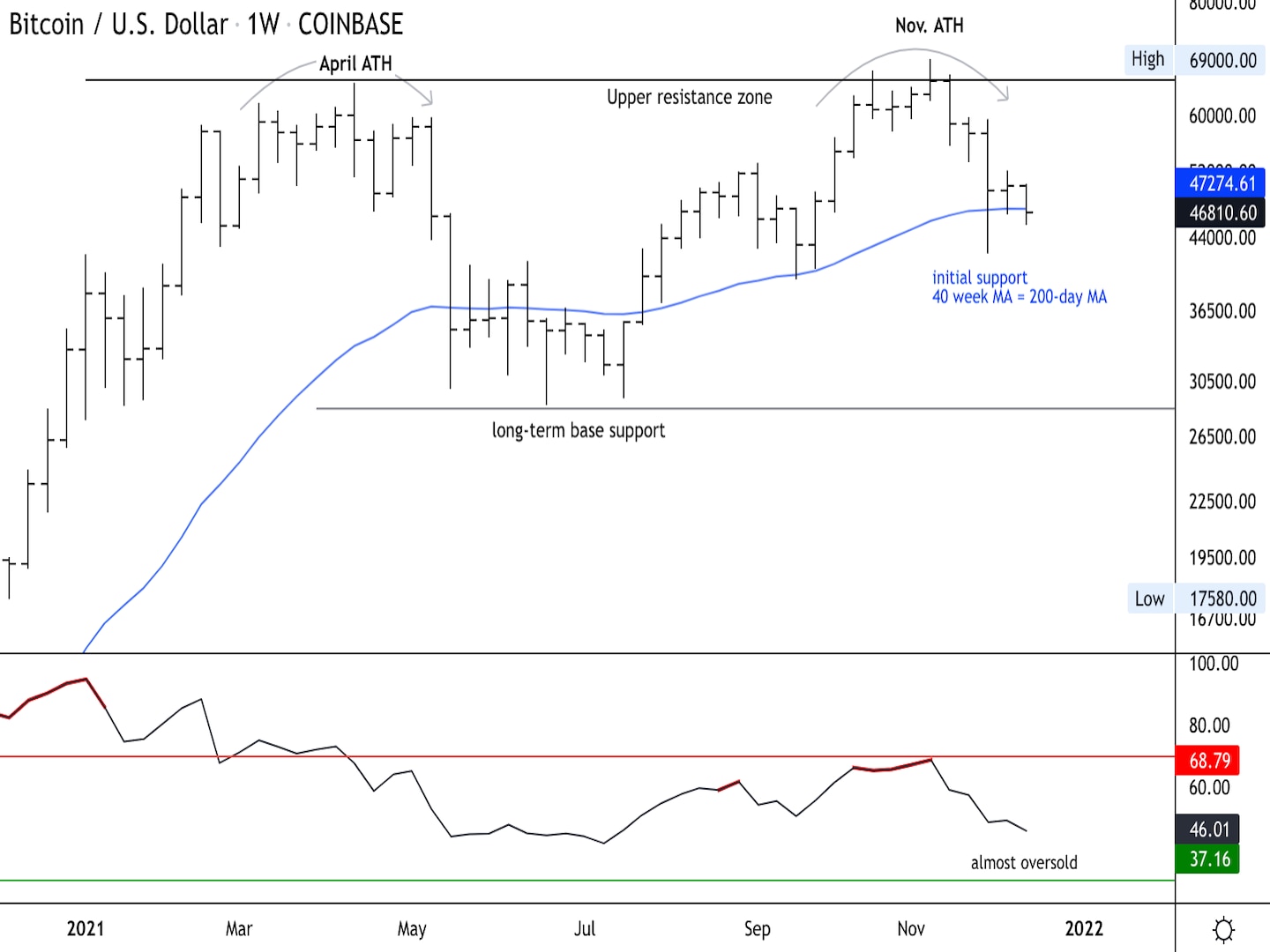 برداشت تکنسین: خرید کوتاه مدت BTC ممکن است با توجه به حرکت منفی در نمودار هفتگی محدود شود.