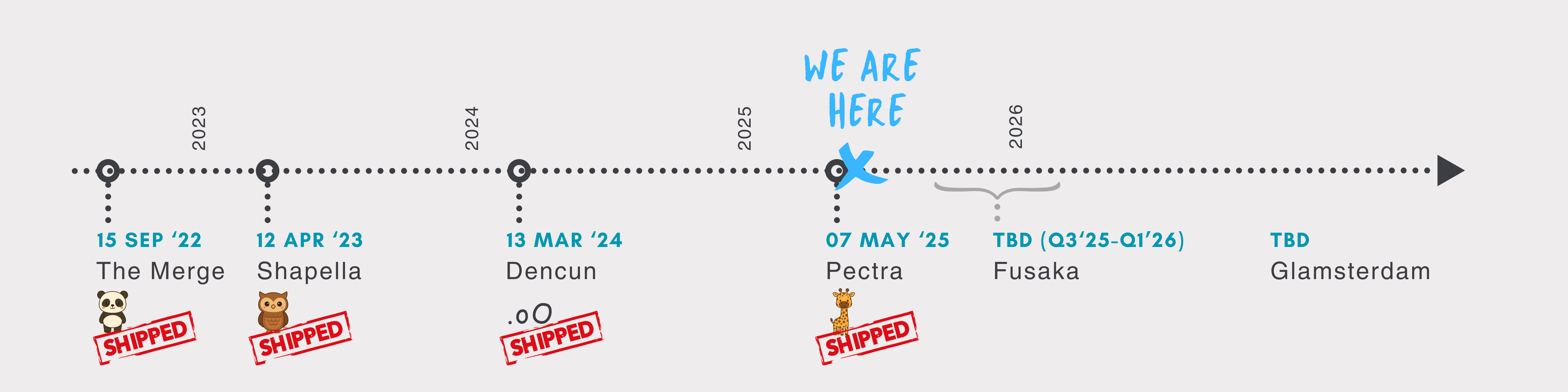 از زمان آخرین پاسگاه ، ارتقاء PECTRA ارسال شده و توسعه دهندگان اصلی تأکید سنگینی بر نگه داشتن لاغر به روزرسانی بعدی (Fusaka) برای گرفتن Peerdas ، یک قفل مقیاس پذیر ، از درب دارند. آزمایش Fusaka در حال انجام است و توسعه دهندگان هنوز در مورد تاریخ انتشار 2025 خوش بین هستند. پیشنهادات مربوط به ویژگی اصلی به روزرسانی به دنبال Fusaka (“Glamsterdam” ، 2026 پوند) تا 20 ژوئن درخواست می شود.