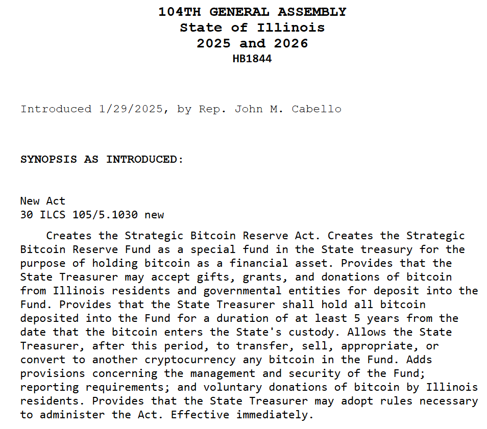 ایلینویز استراتژی رزرو 5 ساله بیت کوین را پیشنهاد می کند