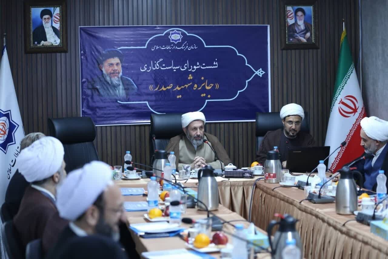 دکتر یحیی جهانگیری رئیس نمایندگی سازمان فرهنگ و ارتباطات اسلامی در شهر مقدس قم در ادامه این جلسه گفت: تصمیم به برگزاری جایزه شهید صدر با این دغدغه شروع شد که حضور حوزههای علمیه در عرصه ی بین الملل بیشتر تبلیغی بوده و اساساً به خاطر کنشگری تبلیغی ما در عرصه ی بین الملل، عملاً مخاطبان ما هم محدود به حوزه ی باورمندان به معارف اهل بیت(ع) شدهاند که نتیجتاً بخشی از تشنگان معارف دینی یا حداقل بخشی از مخاطبان بالقوه ما که می توانستند از ظرفیتهای دانشی حوزه علمیه بهره مند بشوند، از این ظرفیت اساسا بهره مند نمیشوند و سازمان فرهنگ و ارتباطات اسلامی به مثابه یک قرارگاه، میتواند سکوی پرتاب و صادرات اندیشه های ناب حوزه به عرصه بین الملل باشد.