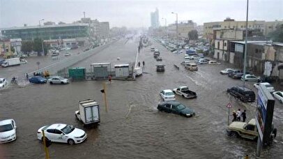 بارش‌های سیل آسا در مدینه منوره + فیلم