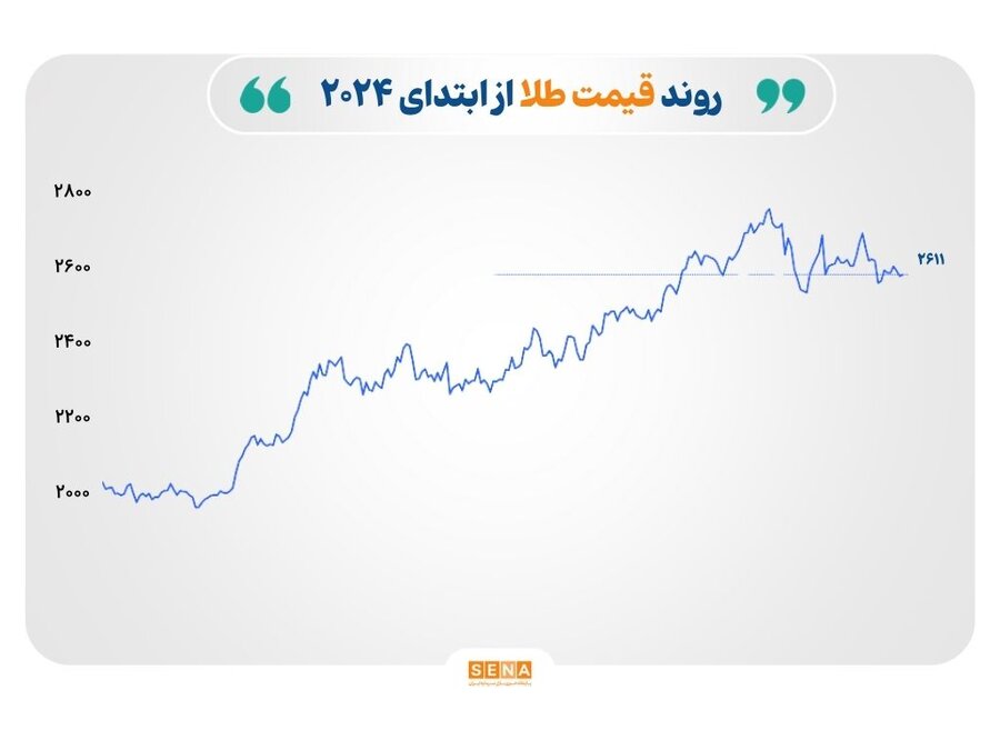 طلا: قیمت هر اونس طلا به ۲۶۱۰.۵۵ دلار رسید که افزایش ۳.۹۲ دلاری، معادل ۰.۱۵% ، را نشان میدهد. طلا در سال ۲۰۲۴ با رشد ۲۶ درصدی قویترین عملکرد سالانه خود از سال ۲۰۱۰ را به ثبت رساند. عوامل کلیدی شامل سیاستهای تسهیل پولی در آمریکا، تنشهای ژئوپلیتیکی، و خریدهای بیسابقه بانکهای مرکزی بوده است. با وجود تقویت دلار و افزایش سود اوراق خزانهداری، طلا همچنان عملکردی برتر داشت.