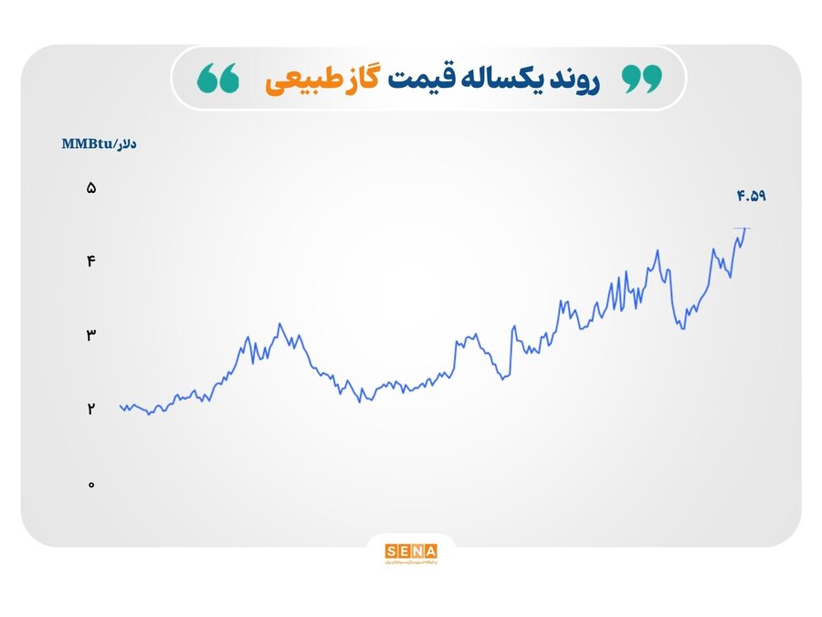 گاز طبیعی: قراردادهای آتی گاز طبیعی آمریکا در هفته گذشته با رشد ۱۴ درصدی همراه شد و به ۴.۳ دلار در هر میلیون بیتییو رسید.