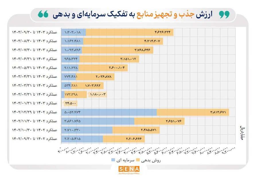 بازار سرمایه در آذرماه چقدر منابع جذب و تجهیز کرد؟/ ارزش جذب و تجهیز منابع به تفکیک سرمایهای و بدهی تا پایان آذر ماه، به مرز ۶۰۰ هزار میلیارد تومان رسید