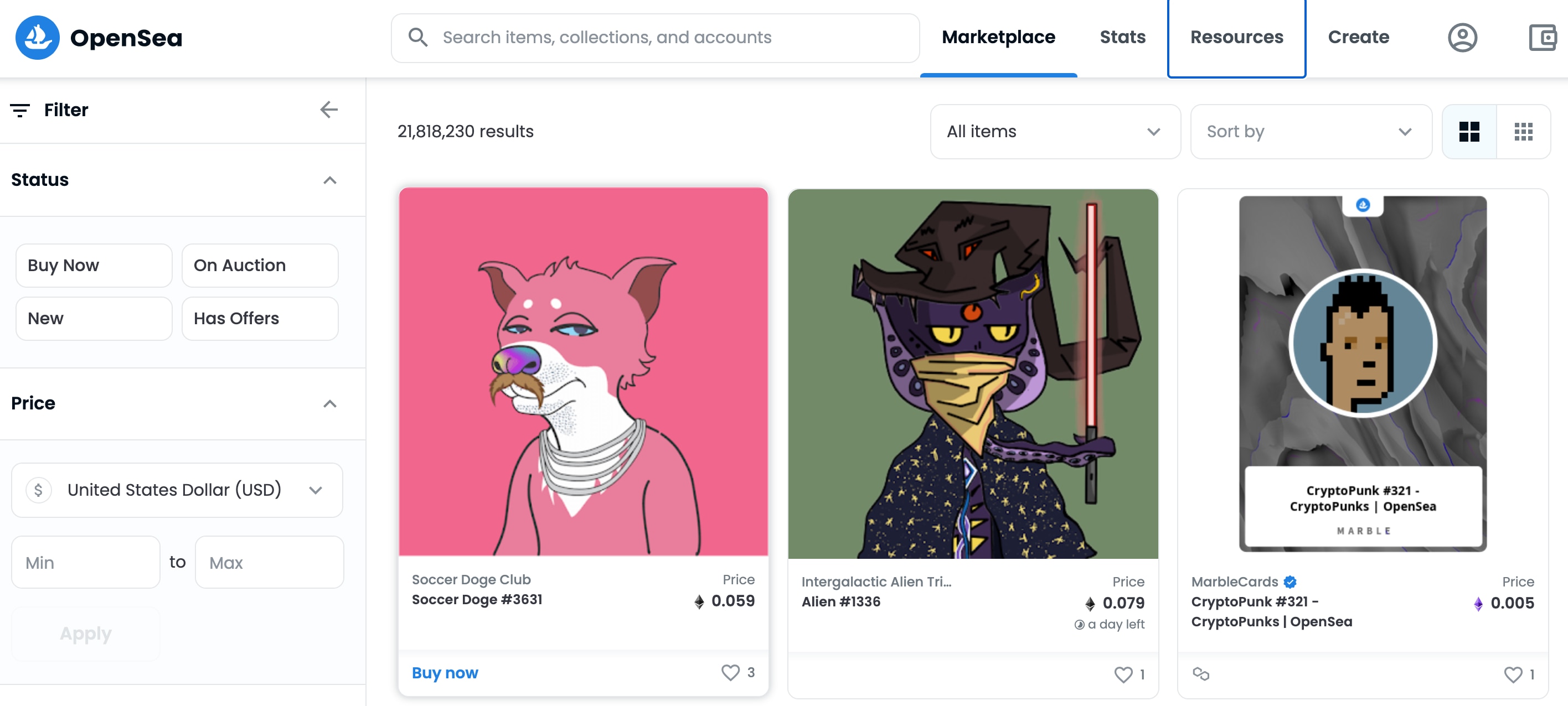 OpenSea همچنین کمی غیرقانونی تر از بنیاد و SuperRare است ، که هر دو سعی می کنند شهرت خود را در زمینه هنرهای دیجیتال افزایش دهند. OpenSea جایی است که شما به دنبال شیرهای تنبل خود ، میمون های بی حوصله خود می روید-بیشتر چیزهای هنری خودآگاه تر تمایل دارند قبل از پیدا شدن راه خود به بازار ثانویه OpenSea در سایر سیستم عامل ها شروع شوند.