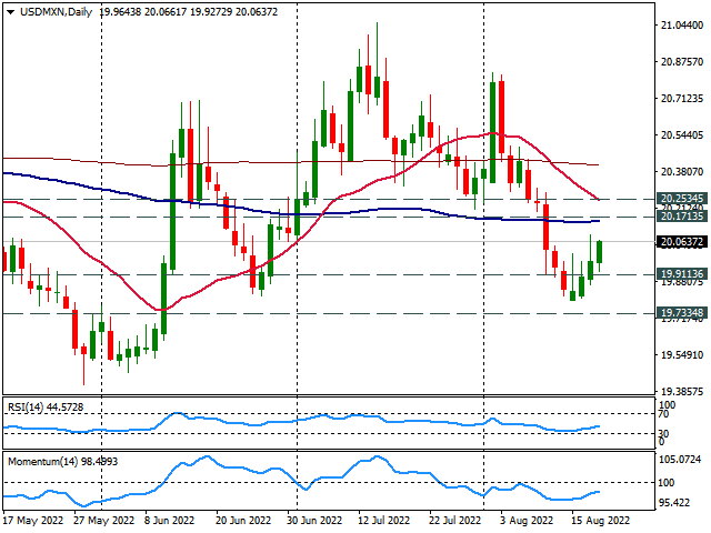- USD/MXN برای سومین روز متوالی افزایش یافت، دوباره بالای 20.00.