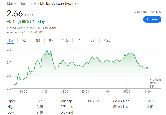 سهام MULN در روز جمعه قبل از از دست دادن جایگاه خود در پایان، بسیار بالاتر بود. سهام MULN با افزایش بیش از 15 درصدی با 2.77 دلار معامله شد، اما با نزدیک شدن به پایان هفته، جایگاه خود را از دست داد. بنابراین، چرا این چرخش بزرگ؟