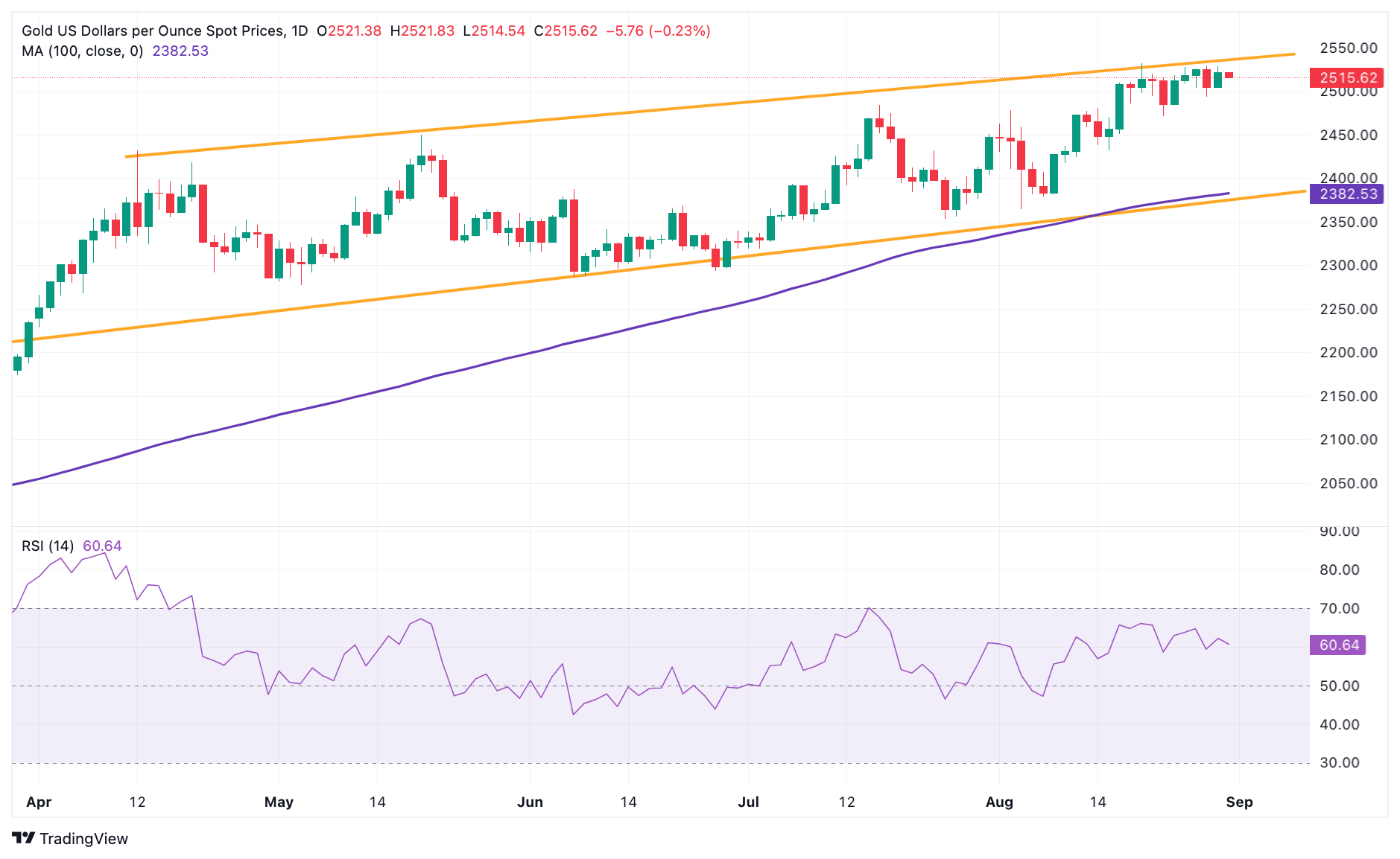 از سوی دیگر، هدف نزولی اولیه برای XAU/USD می تواند رقم گرد 2500 دلار باشد. شکست قاطع به زیر این سطح می تواند پتانسیل نزولی بیشتری را به سمت 2,432 دلار (کمترین قیمت 15 آگوست) در مسیر تا 2,382 دلار (EMA 100 روزه) قرار دهد.