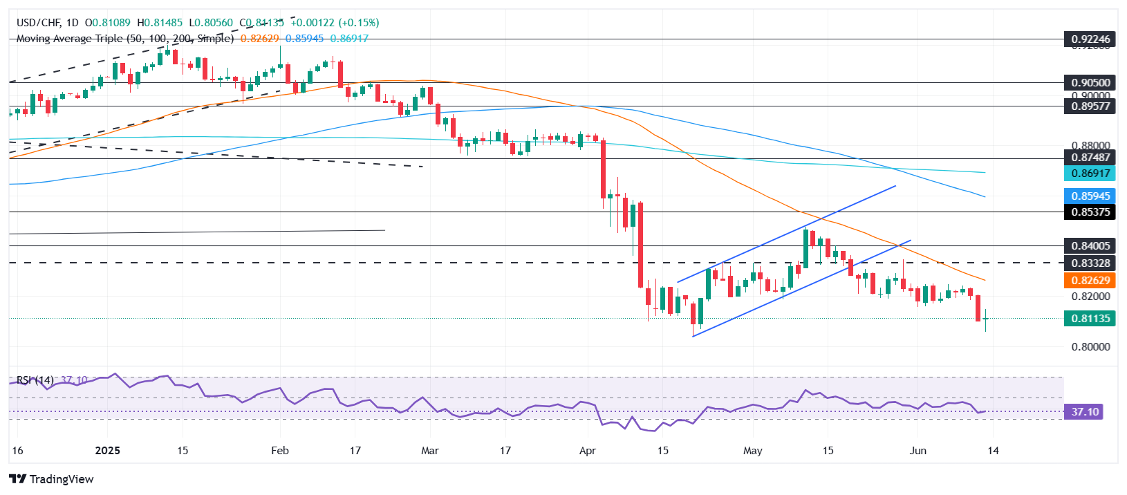 در صعود ، یک استراحت سرنوشت ساز در 13 ژوئن 0.8147 می تواند درب را برای آزمایش 0.82 باز کند ، و به دنبال آن میانگین حرکت 50 روزه ساده (SMA) در 0.8057.