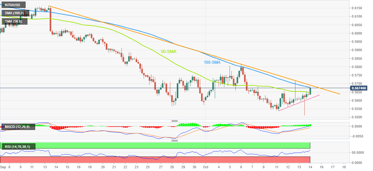 [ad_1] NZD/USD پیشنهادها را برای افزایش بازگشت مجدد روز قبل از پایین ترین سطح 31 ماهه می پذیرد. شاخص CPI چین به 2.8% سالانه افزایش یافت اما PPI در ماه سپتامبر به 0.9% کاهش یافت. شکست پایدار 50-SMA، نوسانگرهای محکم تر به خریداران کمک می کند تا از خط مقاومت ماهانه عبور کنند. فروشندگان ممکن