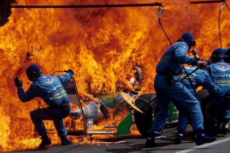 به رقابتهای هیجان انگیز تقویم ۱۹۹۴ و مسابقه گرند پری آلمان برویم. جوز ورشتپن، پدر مکس ورشتپن (راننده تیم ردبول و قهرمان جهان در سال ۲۰۲۱)، در سال ۱۹۹۴ به عنوان راننده ذخیره برای تیم بنتون (Benetton) مسابقه میداد تا اینکه همه چیز در رقابت فرمول یک ۱۹۹۴ آلمان به یک فاجعه تبدیل شد. او برای سوخت گیری مجدد به پیت استاپ آمد اما جدا شدن لوله بنزین از ماشین فرمول یک او و دمای بالای لاستیکها، ناگهان همه چیز را به آتش کشید. خوشبختانه تمام اعضای گاراژ و جوز ورشتپن از لباسهای ضد آتش استفاده میکردند و آسیب شدیدی ندیدند اما همین موضوع کافی بود تا FIA کمی نگران شود!