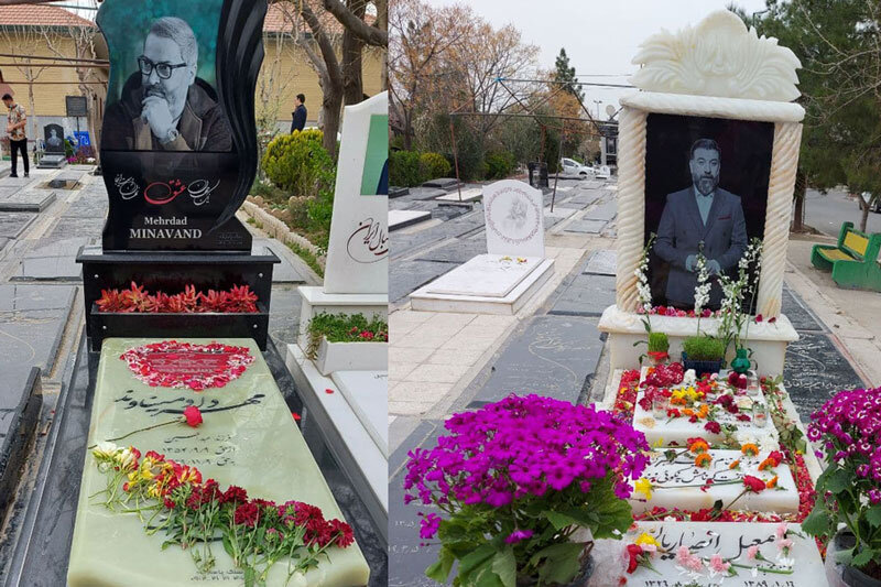 ببینید | حال و هوای مزار علی انصاریان و مهرداد میناوند در آخرین پنجشنبه سال