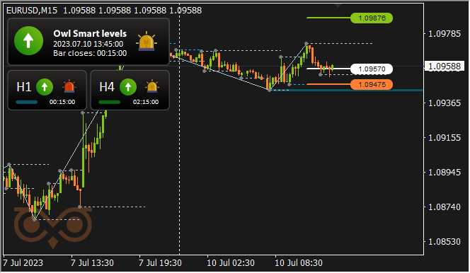 اندیکاتور Owl Smart Levels اولین سیگنال را برای باز کردن معامله برای خرید در EURUSD بعدازظهر دوشنبه ارائه داد.