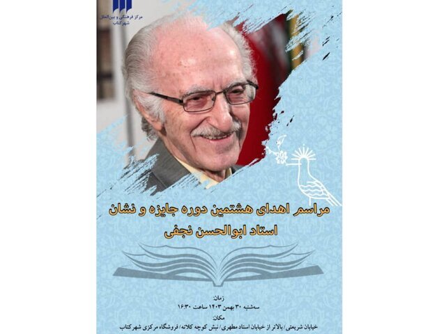 به گزارش خبرگزاری خبرآنلاین، به مناسبت پاسداشت مقام علمی و فرهنگی ابوالحسن نجفی و تشویق نسل جوان در انتخاب آثار برای ترجمه و توجه به درستاندیشی و درستنویسی، مراسم اهدای هشتمین دوره جایزه و نشان «ابوالحسن نجفی» با حضور هیئت داوران و برگزیدگان این جایزه سهشنبه ۳۰ بهمن از ساعت ۱۶:۳۰ در شهرکتاب مرکزی واقع در خیابان شریعتی، بالاتر از خیابان استاد مطهری، نبش کوچه کلاته، پلاک ۷۶۵ برگزار میشود.