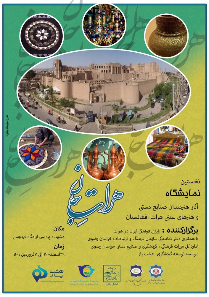 وی ادامه داد: این نمایشگاه با همکاری دفتر نمایندگی سازمان فرهنگ و ارتباطات اسلامی خراسان رضوی، ادارهکل میراث فرهنگی، گردشگری و صنایعدستی خراسان رضوی و موسسه توسعه گردشگری هشتیار برگزار میشود.
