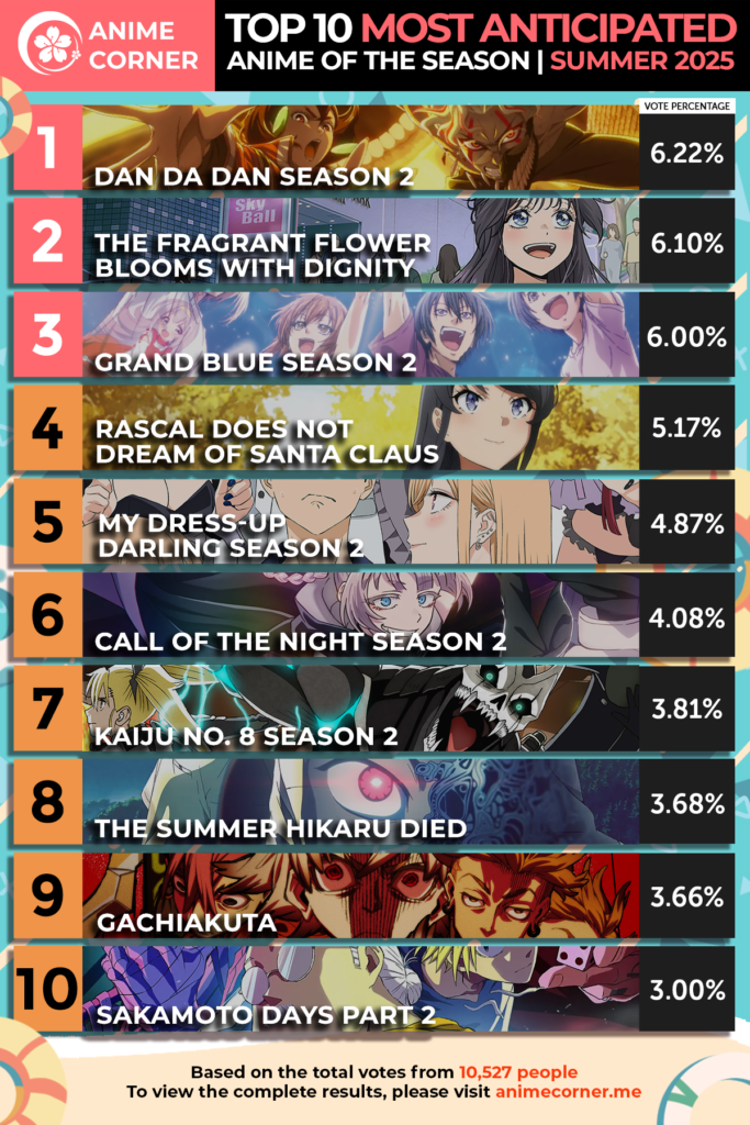 تابستان ۲۰۲۵، با این فهرست متنوع از انیمههای جدید و ادامهدار، یکی از بهترین فصلها برای طرفداران انیمه خواهد بود. از اکشن و ماجراجویی گرفته تا داستانهای عاشقانه و ترسناک، هر کدام از این آثار چیزی منحصربهفرد برای ارائه دارند. کدامیک از این انیمهها را بیشتر منتظرید؟ نظرات خود را با ما به اشتراک بگذارید!