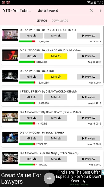 YT3 YouTube Downloader اپلیکیشنی ساده و کاربرپسند برای دانلود ویدیو از یوتیوب است. این برنامه به کاربران امکان میدهد تا ویدیوها را در فرمتهای MP3 و MP4 دانلود کنند. همچنین، قابلیت پیشنمایش و نمایش متن ترانهها از ویژگیهای برجسته این اپلیکیشن محسوب میشوند. این اپلکیشن یکی از بهترین اپلیکیشن های دانلود از یوتیوب برای اندرویید به خصوص برای کسانی است که دنبال نسخه صوتی ویدئوها هستند.