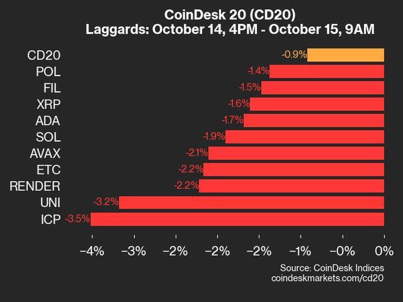 بهروزرسانی عملکرد CoinDesk 20: ICP با کاهش اینچ شاخص از دوشنبه 3.5 درصد کاهش مییابد.