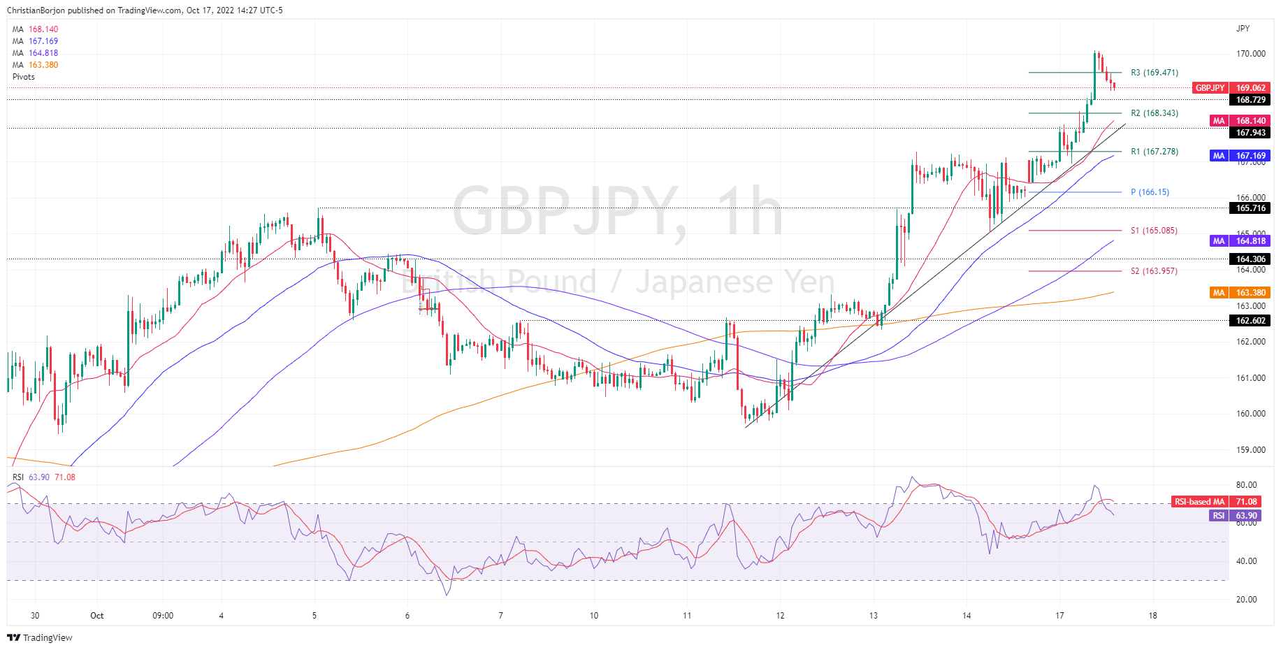 GBP/JPY به بالاترین حد خود در 6 سال اخیر در 170.10 صعود کرد که دلیل آن تسکین سرمایهگذاران از جرمی هانت، جدیدترین وزیر دارایی بریتانیا است که از بودجه کوچک کوارتنگ در تلاش برای تسهیل بازارها صرف نظر میکند. بنابراین، پوند انگلیس در برابر اکثر ارزهای G8، به ویژه ین، افزایش یافت و 290 پیپ افزایش یافت. در زمان نوشتن این مقاله، GBP/JPY در 169.18 معامله می شود.