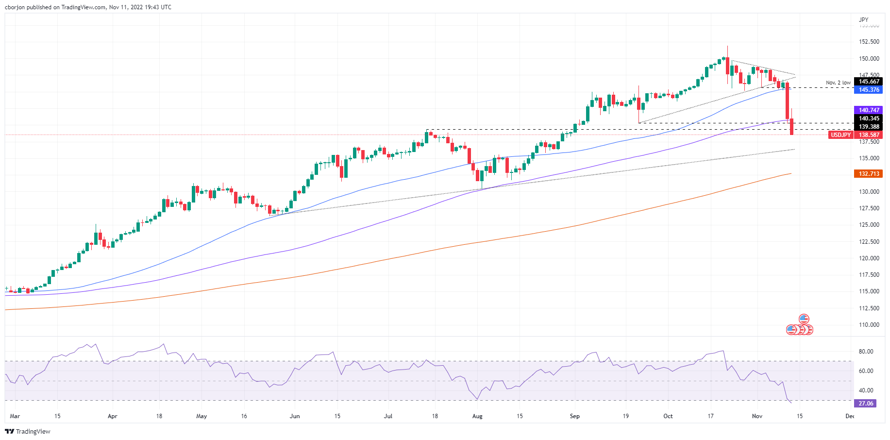 USDJPY سقوط آزاد خود را تمدید کرد و 200 پیپ به اضافه دیگر در روز جمعه پایینتر از میانگین متحرک نمایی 100 روزه (EMA) در 140.76 سقوط کرد. گمانه زنی ها مبنی بر اینکه فدرال رزرو ممکن است سرعت افزایش نرخ بهره را کاهش دهد و بازدهی خزانه داری ایالات متحده کاهش یابد، دو عامل اصلی تاثیرگذار بر دلار آمریکا (USD) هستند. بنابراین، USDJPY در 138.54 معامله می شود که کمتر از قیمت افتتاحیه آن 1.73٪ است.