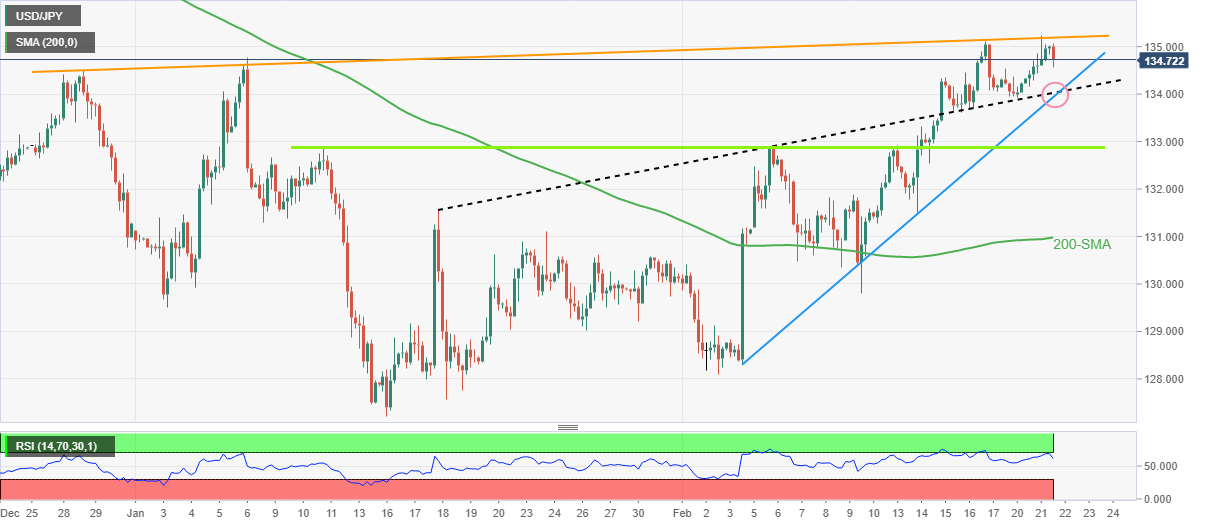 گاو USD/JPY با کاهش قیمت به 134.70 نفس می کشد، در حالی که زیان ملایم را چاپ می کند، اولین بار در چهار روز گذشته، در اوایل چهارشنبه. با انجام این کار، جفت ین یک چرخش U را از خط مقاومت شیب دار به سمت بالا از اواخر دسامبر 2022 نشان می دهد.