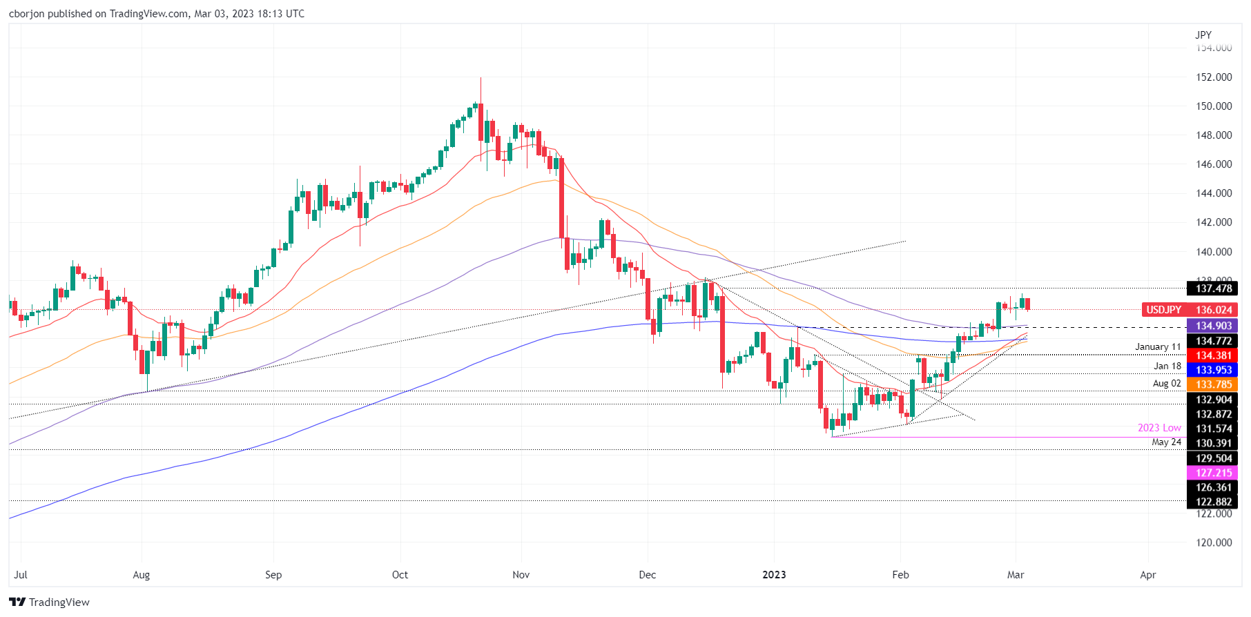 - تحلیل قیمت USD/JPY: صعودی بالای 136.00; در غیر این صورت، تست مجدد 134.00 روی کارت ها است
