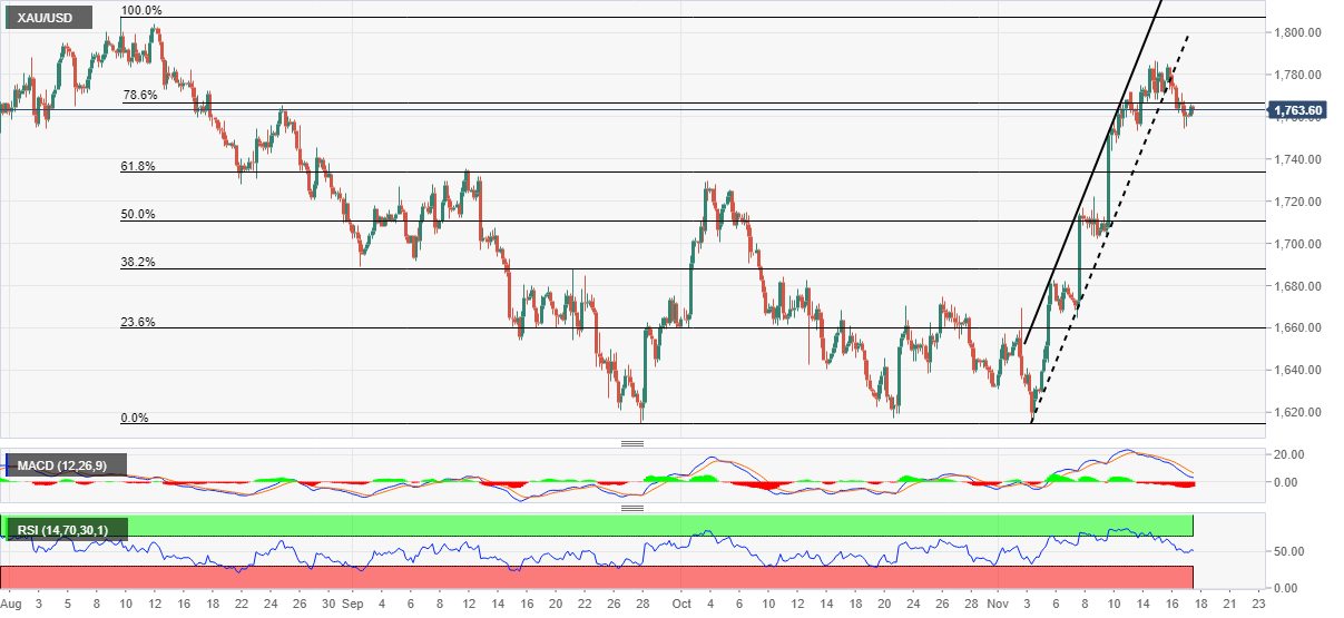 همچنین سیگنالهای نزولی XAUUSD، سیگنالهای MACD نزولی و ناتوانی اخیر مظنه در عبور از 78.6% اصلاح فیبوناچی از روند نزولی اوت تا سپتامبر این فلز است.