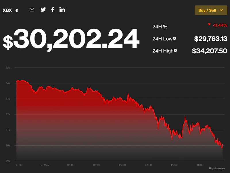 بیت کوین (BTC) برای اولین بار در ده ماه گذشته به زیر 30000 دلار سقوط کرد.