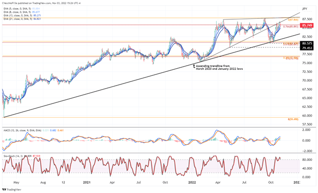 تجزیه و تحلیل فنی نرخ NZD/JPY: نمودار روزانه (مارس 2020 تا نوامبر 2022) (نمودار 1)