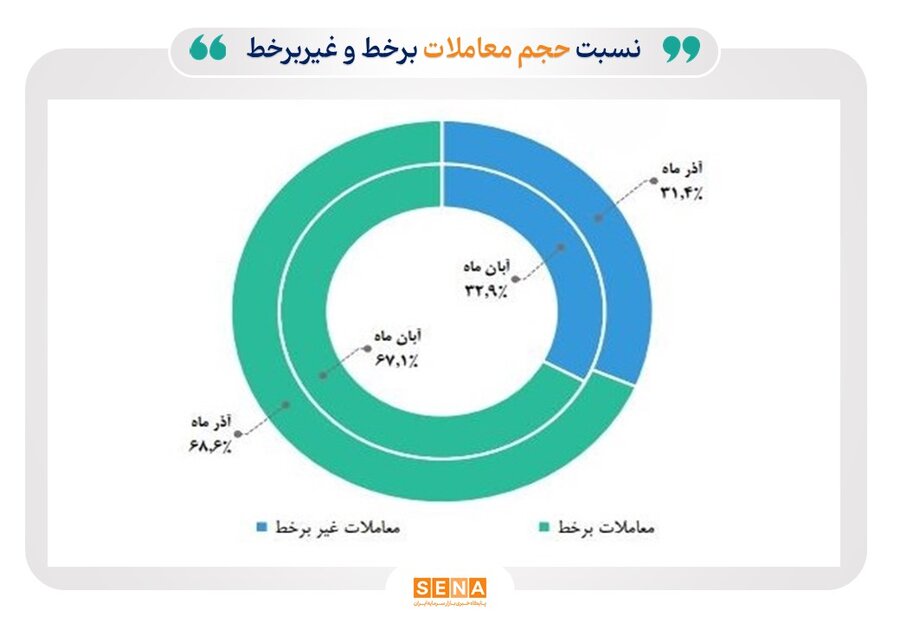 این درحالی است که معاملات برخط در آبان ۶۷.۱ درصد و غیر برخط ۳۲.۹درصد بوده است.