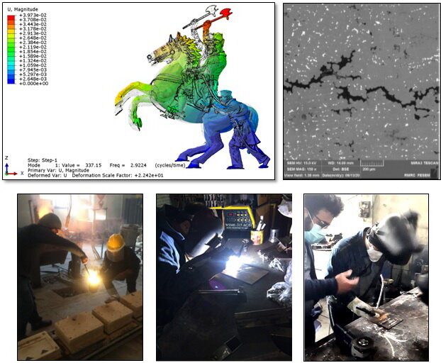 او افزود: در این راستا در فاز سوم پروژه، ضمن تکمیل اطلاعات تخصصی از پایین سطح، مدلسازی استاتیکی و دینامیکی مجسمه و انجام محاسبات مهندسی بیشترین تنش وارده و تخمین عمر مجسمه از ناحیه ترکهای مذکور، تمام مطالعات تخصصی مورد نیاز برای ارزیابی ایمنی شیوههای ممکن در ترمیم و کنترل خوردگی ترکهای تحت تنش با تهیه و شبیهسازی آلیاژِ مجسمه و انجام عملیات پیشبینی شده است. جوشذوبی، لحیم سخت، لحیم نرم و چسبکاری با همکاری دانشگاه صنعتی شریف و تحت نظارت پژوهشکده حفاظت و مرمت آثار تاریخی ـ فرهنگی انجام شده است.