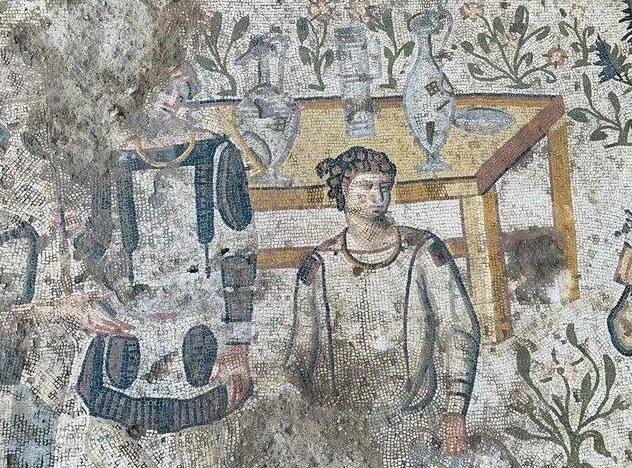به گفته باستانشناسان، موزائیکی که سال گذشته در این ویلای باستانی کشف شده است، صحنهای از یک جشن در فضای باز را به تصویر میکشد و مهمانان و خدمتکارانی در این موزائیک باستانی به چشم میخورند. باستانشناسان این گمان را مطرح کردهاند که بخشهایی از موزائیک باستانی که در نقطه دیگری از این محدوده کشف شده احتمالا ادامه موزائیک تصویرگر جشن است.