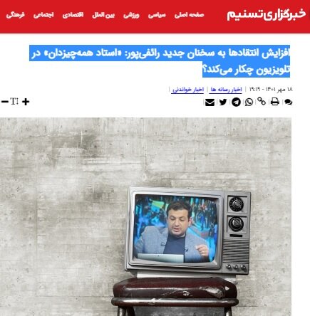 خبرگزاری دانشجویان ایران (ایسنا) در مطلبی او را «استاد همهچیزدان» خوانده و از چرایی حضور او در تلویزیون و در اختیار قرار دادن فرصت سخنرانی از تریبون ملی برای طرح آنچه «ادعاهای غیر علمی» رائفیپور عنوان می کند، انتقاد کرد. ایسنا نوشته: «[رائفیپور] در زمینه خاصی تحلیل و سخنرانی ندارد. معمولا در هر زمینهای که دلش بخواهد، سخنرانی میکند.» مشروح این مطلب انتقادی به قلم سهیلا صدیقی را در ادامه میخوانید:
