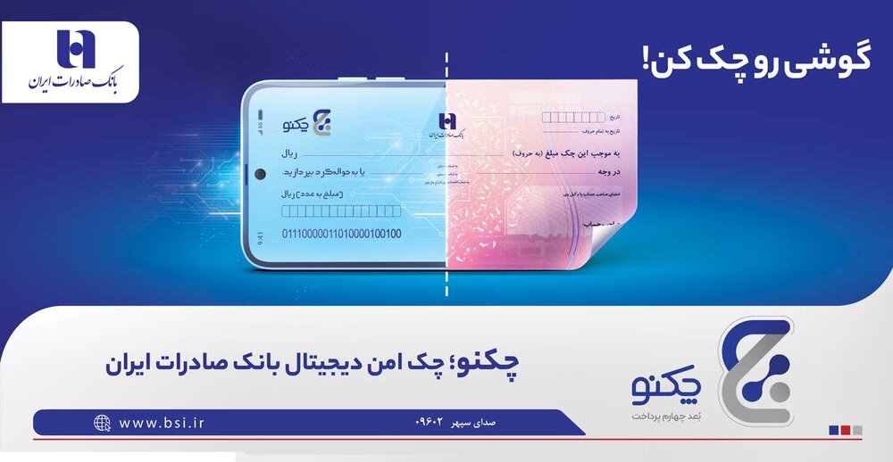 «چکنو» چک امن دیجیتال بانک صادرات ایران ۱۱ دیماه سال جاری طی مراسمی ویژه رونمایی شد. تمامی مشتریان بانک صادرات ایران که حساب جاری با دستهچک دارند، بدون نیاز به مراجعه به شعبه میتوانند از طریق نرمافزار همراهبانک برای صدور دسته چک الکترونیک درخواست کنند. این دستهچک الکترونیک با نام تجاری «چکنو» برای صدور دسته چک برای همه افراد تا ١٠ برگ صادر خواهد شد.
