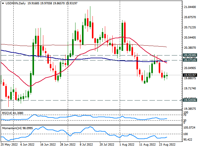 • USD/MXN بالای 19.90 باقی می ماند اما با فشار مواجه است.