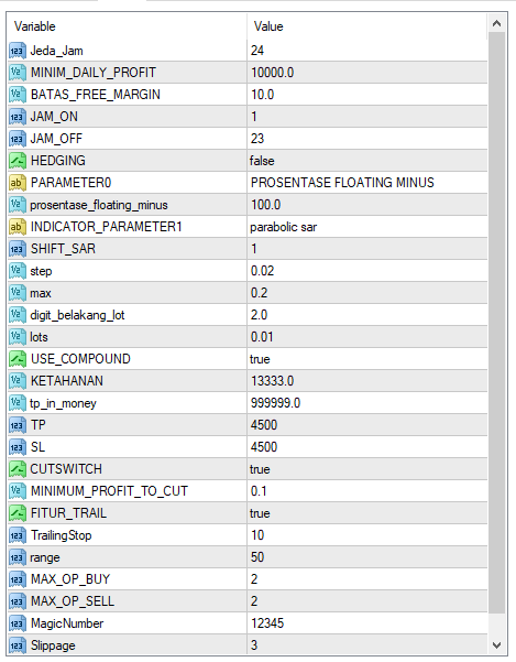 [ad_1] اگر سپرده اولیه 100 دلار در حساب میکرو با ریسک بالا است از تنظیمات پارامتر زیر استفاده کنید: جفت ارز: GBP/USD بازه زمانی: m5 اهرم: 1: 500 مبادله حساب رایگان (ربات فارکس برای هفته ها یا حتی ماه ها ضرر شناور را حفظ خواهد کرد) تنظیمات پارامتر برای GBP/USD ، M5 jeda_jam = 24