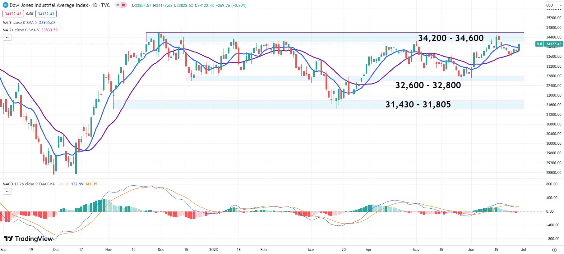 شاخص داوجونز به منطقه مقاومت 34200 تا 34600 بازگشته است. این منطقه قیمت ها را حداقل هفت بار در هفت ماه گذشته کاهش داده است. گاوها باید بشکنند و به بالای 34600 در نمودار هفتگی ببندند تا به یک رالی واقعی برسند. نزدیک شدن به بالاتر احتمالاً سطح 35500 را به هدف صعودی بعدی تبدیل می کند